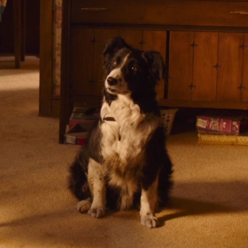Mercy era un border collie, luciendo pelaje blanco y negro.[1]