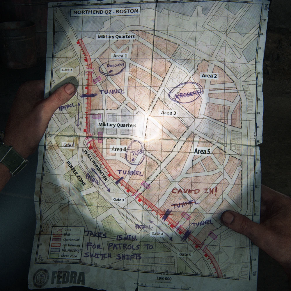 Tess afirma que le trato se completó sin problemas, consiguió suficientes tarjetas de racionamiento para un par de meses. La herida fue causada por un par de sujetos que la atacaron de vuelta a casa, aunque pudo arreglárselas sola. Pero Tess destaca que esos tipos fueron enviados por Robert, otro viejo contrabandista conocido que les debía varios favores. Ella sabe que él y su clan se ocultan en el puerto de Boston, pero no sabe por cuanto tiempo, por lo que Joel y Tess se aproximarán a cobrar su deuda.