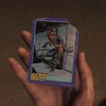 Mortem | El Teatro | En el vestíbulo del teatro, ve detrás del mostrador y rompe las vitrinas. Encontrarás la tarjeta coleccionable en el estante inferior. |