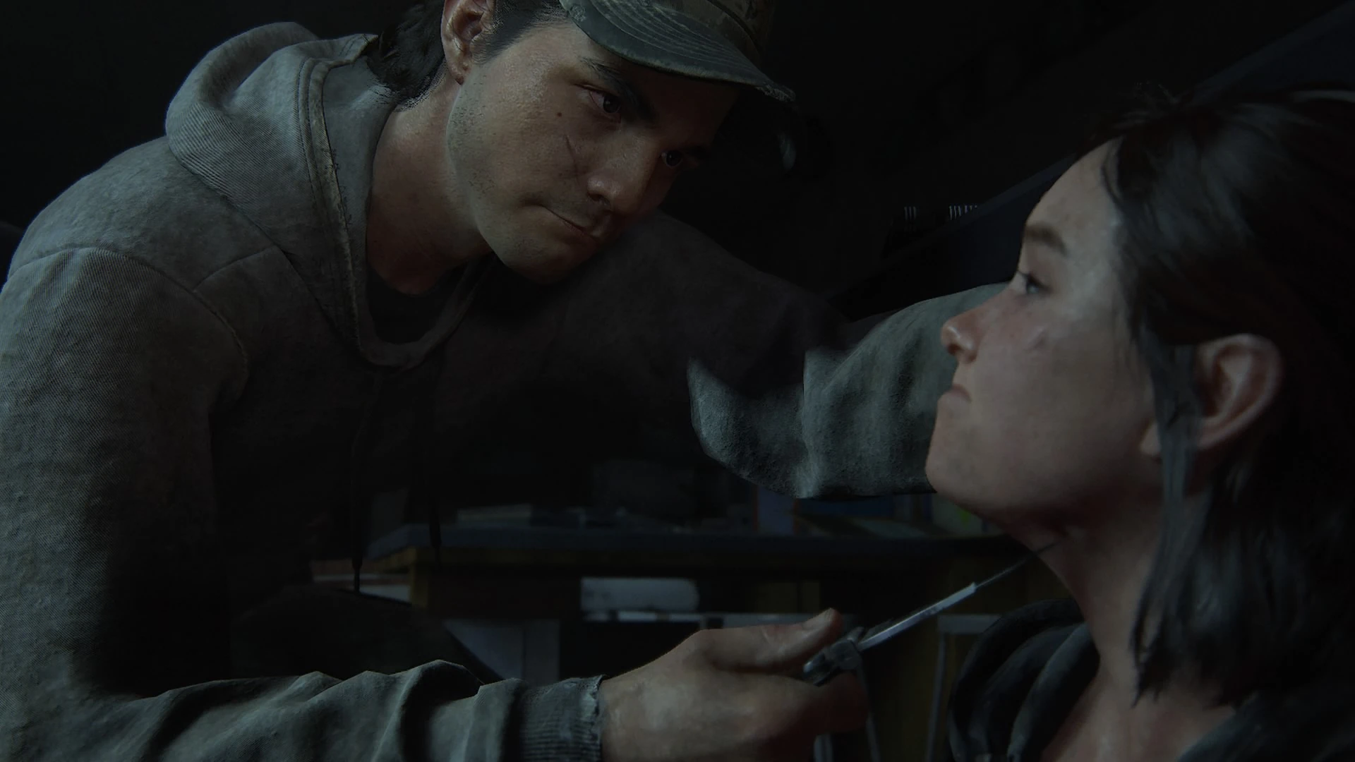 Jordan menaçant Ellie avec son couteau