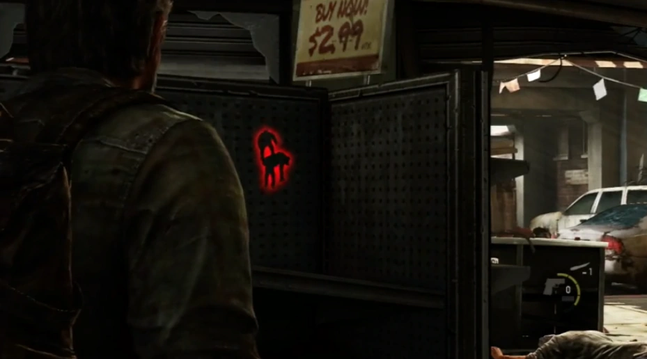 En sortant de l’hôtel, Ellie suivit Joel sur un échafaudage où il aperçut des ennemis en contrebas. Il lui demanda de rester en hauteur pour couvrir ses arrières pendant qu’il descendait affronter les Chasseurs. Avant de partir, il la regarda et lui fit un petit geste de reconnaissance, un remerciement silencieux qu’Ellie comprit.