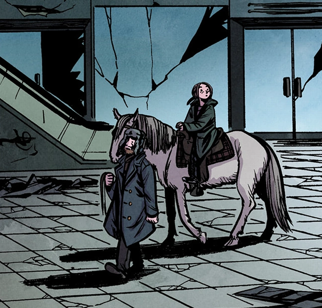 Traversant les toits, elles échappèrent à quelques patrouilles et arrivèrent au centre commercial, celui dans lequel elles s'étaient rendues auparavant. Elles se rendirent à l'ancien campement de Winston où Ellie trouva l'une de ses photos de sa jeunesse, expliquant qu'elle avait entendu dire qu'il était mort d'une crise cardiaque. Riley trouva une bouteille d'alcool et proposa un verre à Ellie avant de quitter l'endroit et d'apercevoir la selle du cheval de Winston, Princesse.[2]
