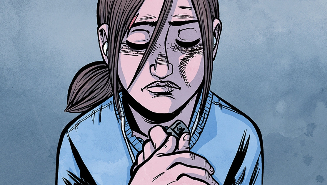 Ellie tenant avec émotion le cran d’arrêt appartenant à sa mère