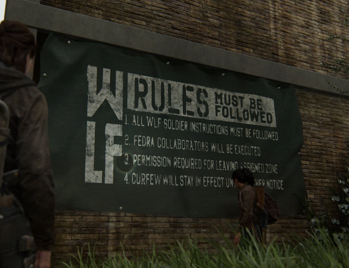 When Joel and Tess are following Marlene to where Ellie is hiding, they cross through FEDRA soldiers fighting and capturing Firefly militia. Marlene comments that she and her fellow Fireflies intended to leave peacefully, but the military attacked their various hideouts. She believes the military's recent attacks against her group are intended to distract the Boston residents from the growing food shortage FEDRA are suffering from, deducing the military intend for her to become a scapegoat for the city's problems.[6]
