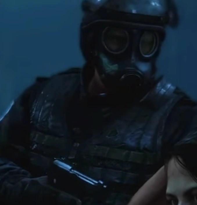 During the initial outbreak, a soldier is seen wearing a uniform with woodland camouflage commonly seen as part of a MOPP Suit worn by soldiers during chemical warfare. Coupled with the gas mask, this implies that the government believed (not incorrectly) that the disease could have been airborne or spread by physical contact, explaining the high amounts of protection.[12]
