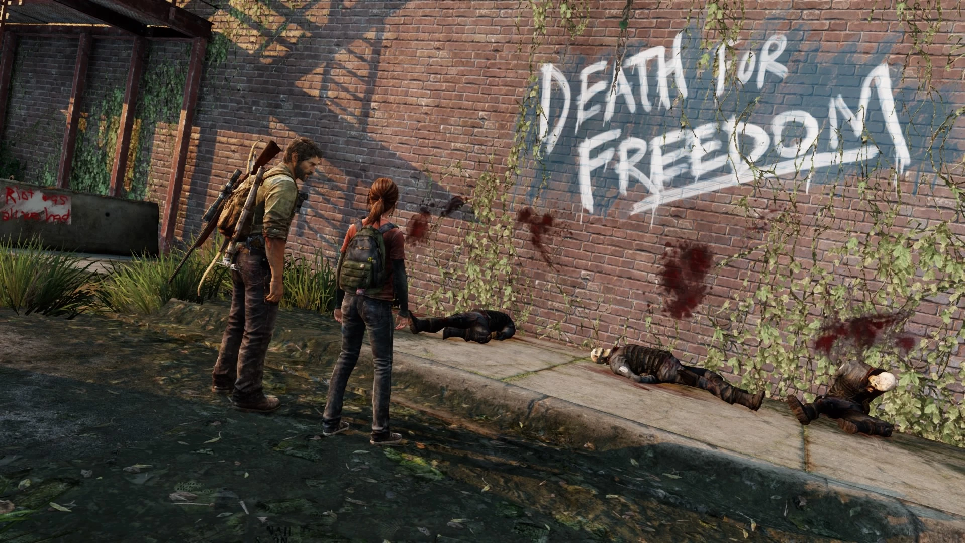 By morning, the military caught up to the trio at the Capitol building, having earlier killed the Fireflies that they were supposed to rendezvous with. Tess killed two soldiers before dying, while Joel and Ellie evaded the others via fighting past various squads of soldiers before making it to the subway line, narrowly avoiding being shot at by a Humvee.[11]