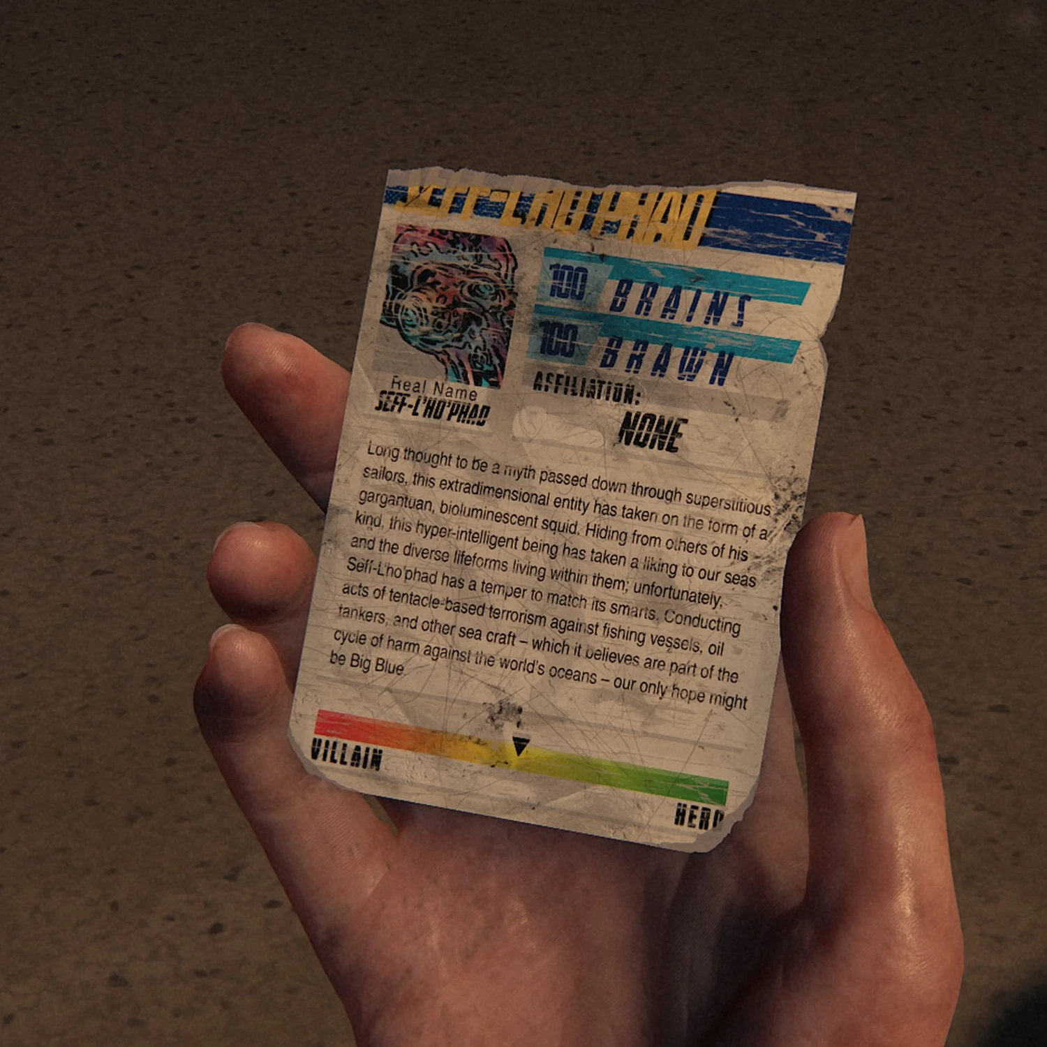 Seff-L'ho'phad is a collectible trading card that is found during the chapter "" in The Last of Us Part II.